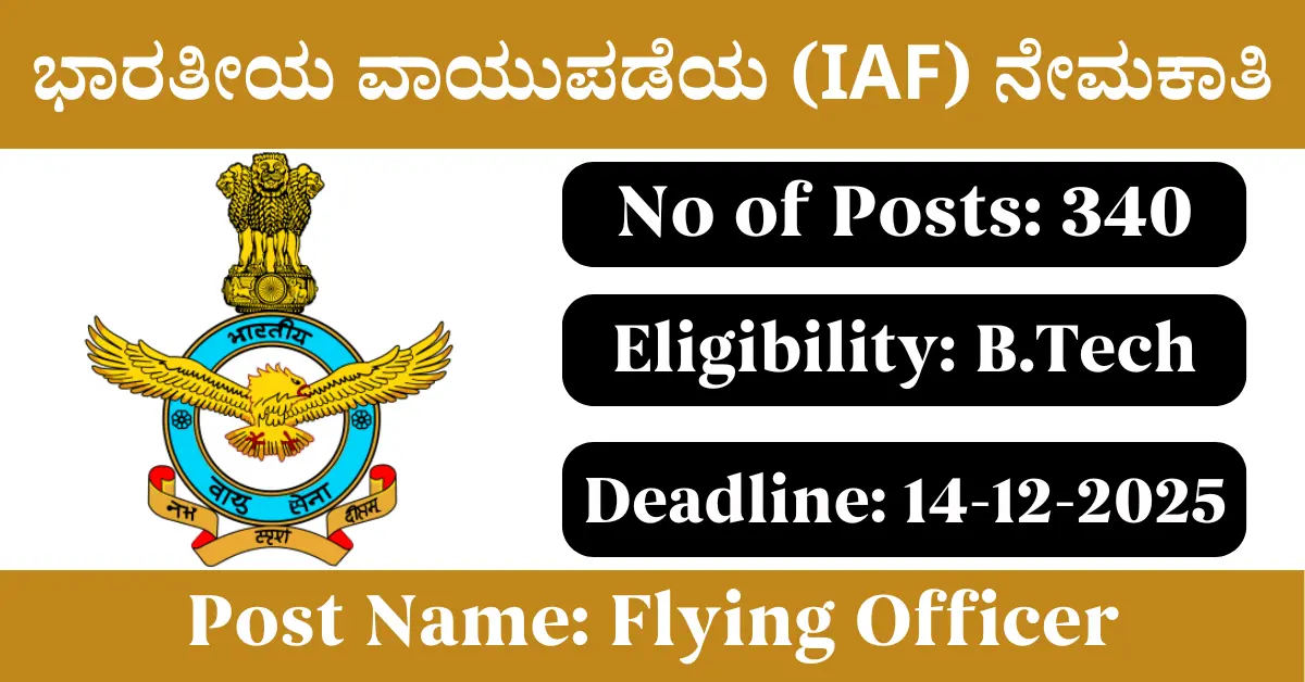 IAF Recruitment 2025: Apply for 340 Flying Officer vacancies. Indian Air Force invited applications from eligible and interested candidates to fill up Flying Officer Posts through IAF official notification November 2025. Job seekers who are looking for a career in All India Government can make use of this opportunity. Interested candidates can Apply Online on or before 14-Dec-2025
