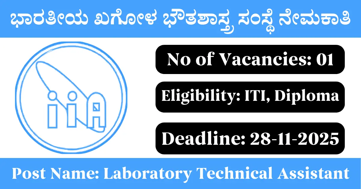 IIAP Recruitment 2025: Apply for 1 Laboratory Technical Assistant vacancies. Indian Institute of Astrophysics invited applications from eligible and interested candidates to fill up Laboratory Technical Assistant Posts through IIAP official notification November 2025. Job seekers who are looking for a career in Bengaluru – Karnataka Government can make use of this opportunity. Interested candidates can attend for Walk-in-interview on 28-Nov-2025