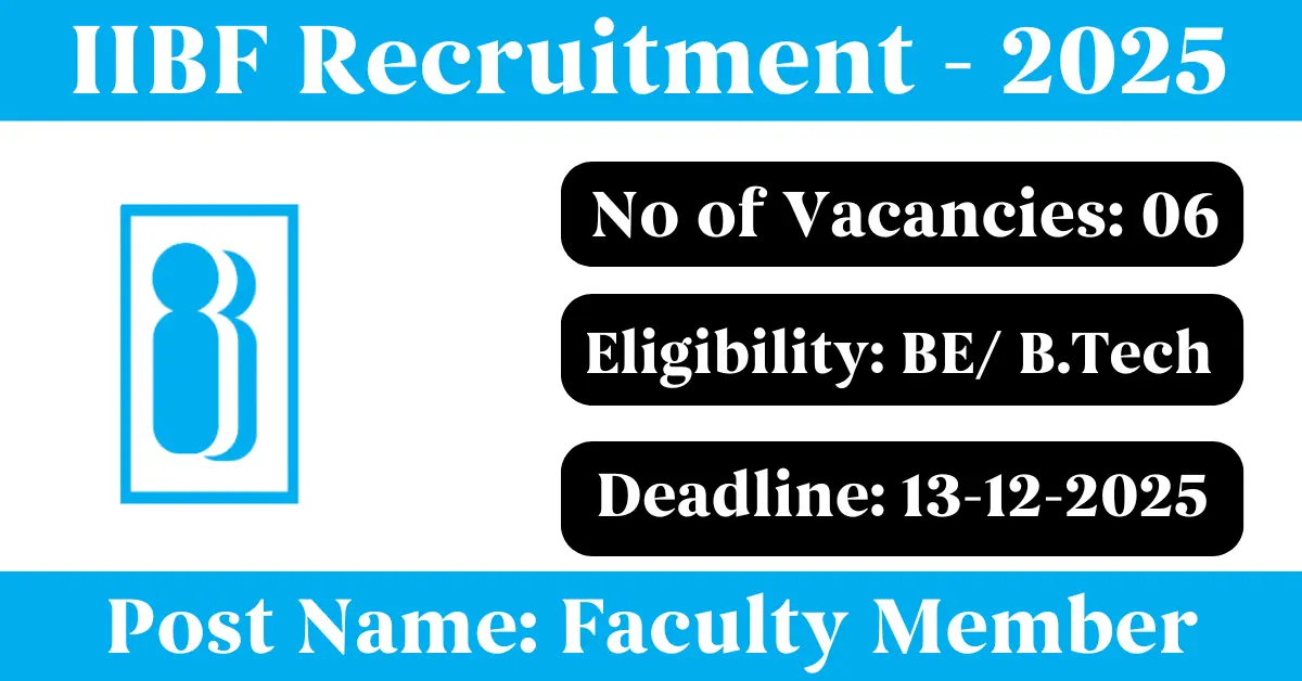 IIBF Recruitment 2025: Apply for 6 Faculty Member vacancies. Indian Institute of Banking and Finance invited applications from eligible and interested candidates to fill up Faculty Member Posts through IIBF official notification December 2025. Job seekers who are looking for a career in Delhi – New Delhi, Chennai – Tamil Nadu, Mumbai – Maharashtra Government can make use of this opportunity. Interested candidates can Apply Online on or before 13-Dec-2025