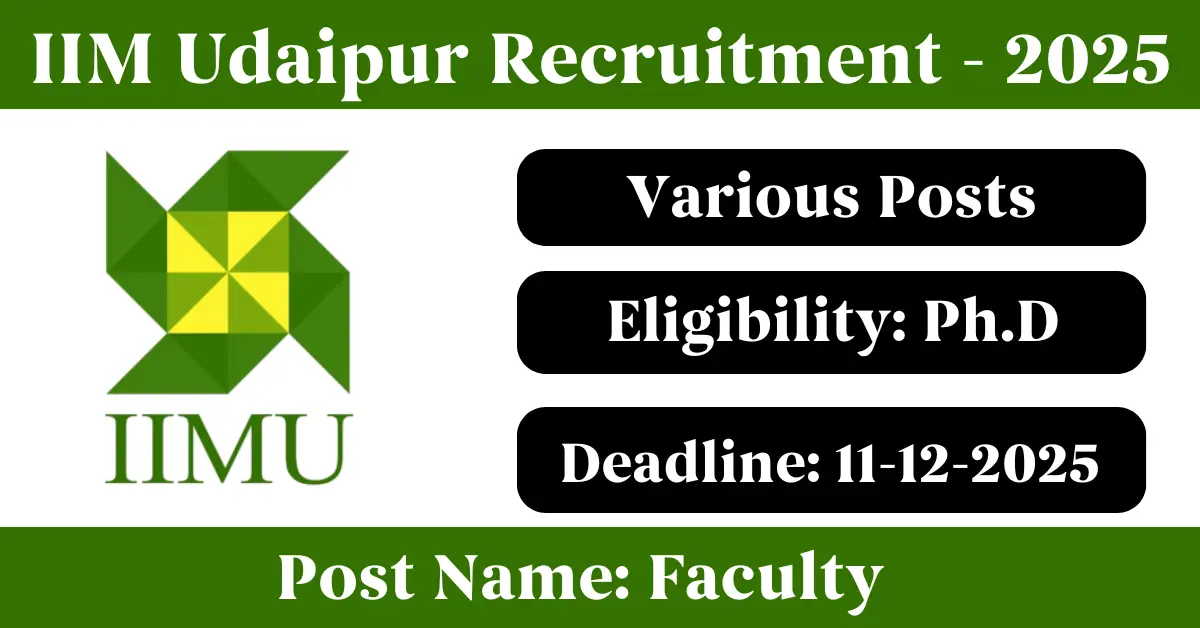 IIM Udaipur Recruitment 2025: Apply for Various Faculty vacancies. Indian Institute of Management Udaipur invited applications from eligible and interested candidates to fill up Faculty Posts through IIM Udaipur official notification November 2025. Job seekers who are looking for a career in Udaipur – Rajasthan Government can make use of this opportunity. Interested candidates can Apply Online on or before 11-Dec-2025