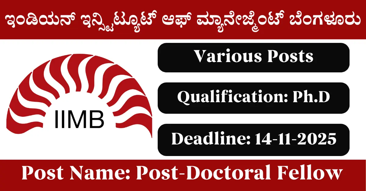 IIMB Recruitment 2025: Apply for Various Post-Doctoral Fellow vacancies. Indian Institute of Management Bangalore invited applications from eligible and interested candidates to fill up Post-Doctoral Fellow Posts through IIMB official notification November 2025. Job seekers who are looking for a career in Bengaluru – Karnataka Government can make use of this opportunity. Interested candidates can Apply Online on or before 14-Nov-2025