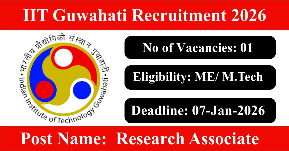 IIT Guwahati Recruitment 2026: Apply for 1 Research Associate vacancies. Indian Institute of Technology Guwahati invited applications from eligible and interested candidates to fill up Research Associate Posts through IIT Guwahati official notification December 2025. Job seekers who are looking for a career in Guwahati – Assam Government can make use of this opportunity. Interested candidates can attend for Walk-in-interview on 07-Jan-2026