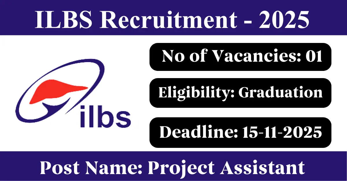 ILBS Recruitment 2025: Apply for 1 Project Assistant vacancies. Institute of Liver & Biliary Sciences invited applications from eligible and interested candidates to fill up Project Assistant Posts through ILBS official notification November 2025. Job seekers who are looking for a career in Delhi – New Delhi Government can make use of this opportunity. Interested candidates can Apply Online on or before 15-Nov-2025