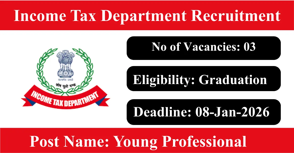 Income Tax Department Recruitment 2026: Apply for 3 Young Professional vacancies. Income Tax Department invited applications from eligible and interested candidates to fill up Young Professional Posts through Income Tax Department official notification December 2025. Job seekers who are looking for a career in Bengaluru – Karnataka Government can make use of this opportunity. Interested candidates can send an E-Mail on or before 08-Jan-2026