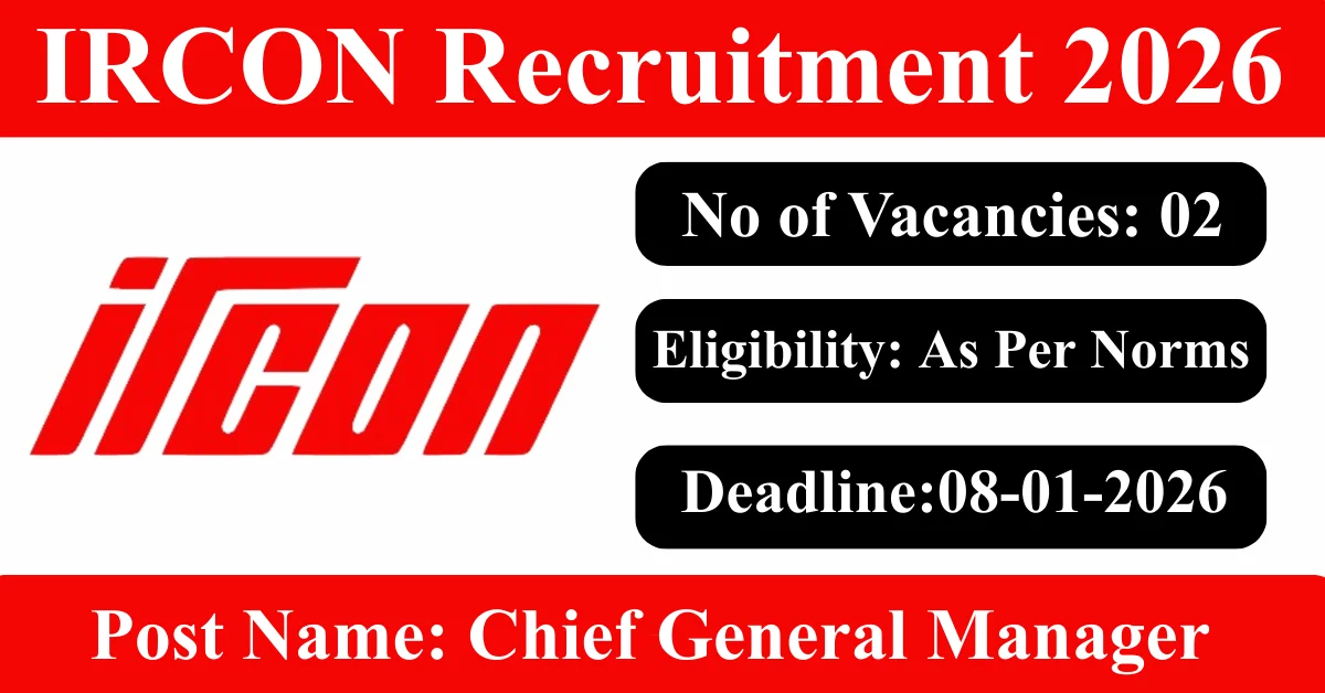IRCON Recruitment 2026: Apply for 2 Chief General Manager/ General Manager/Addl General Manager vacancies. IRCON International Limited invited applications from eligible and interested candidates to fill up Chief General Manager/ General Manager/Addl General Manager Posts through IRCON official notification January 2026. Job seekers who are looking for a career in Delhi – New Delhi Government can make use of this opportunity. Interested candidates can send an E-Mail on or before 08-Feb-2026