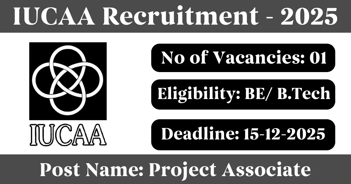 IUCAA Recruitment 2025: Apply for 1 Project Associate vacancies. Inter-University Centre for Astronomy and Astrophysics invited applications from eligible and interested candidates to fill up Project Associate Posts through IUCAA official notification December 2025. Job seekers who are looking for a career in Pune – Maharashtra Government can make use of this opportunity. Interested candidates can Apply Online on or before 15-Dec-2025