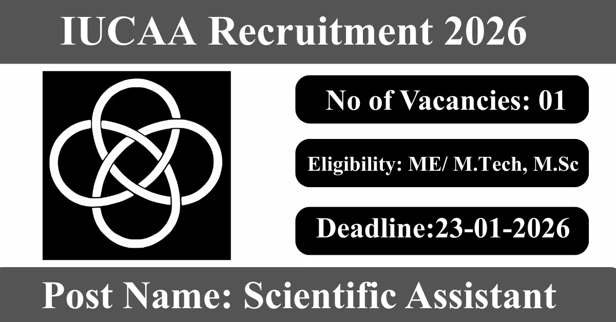 IUCAA Recruitment 2026: Apply for 1 Scientific Assistant vacancies. Inter-University Centre for Astronomy and Astrophysics invited applications from eligible and interested candidates to fill up Scientific Assistant Posts through IUCAA official notification January 2026. Job seekers who are looking for a career in Pune – Maharashtra Government can make use of this opportunity. Interested candidates can Apply Online on or before 23-Jan-2026