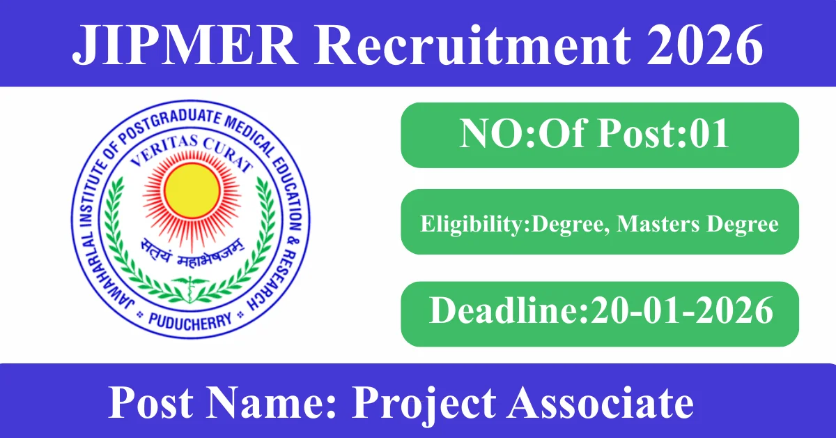 JIPMER Recruitment 2026: Apply for 1 Project Associate-II vacancies. Jawaharlal Institute of Postgraduate Medical Education and Research invited applications from eligible and interested candidates to fill up Project Associate-II Posts through JIPMER official notification January 2026. Job seekers who are looking for a career in Puducherry Government can make use of this opportunity. Interested candidates can attend for Walk-in-interview on 20-Jan-2026