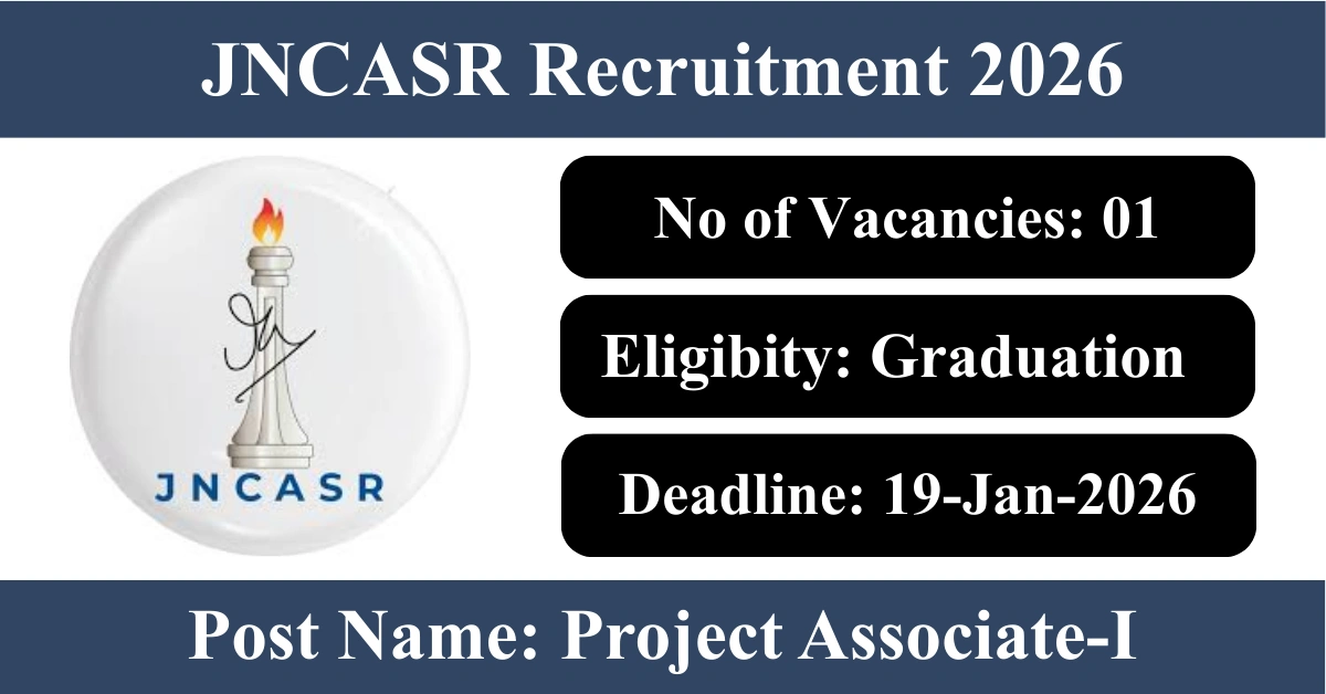 JNCASR Recruitment 2026: Apply for 1 Project Associate-I vacancies. Jawaharlal Nehru Centre For Advanced Scientific Research invited applications from eligible and interested candidates to fill up Project Associate-I Posts through JNCASR official notification January 2026. Job seekers who are looking for a career in Bengaluru – Karnataka Government can make use of this opportunity. Interested candidates can send an E-Mail on or before 19-Jan-2026
