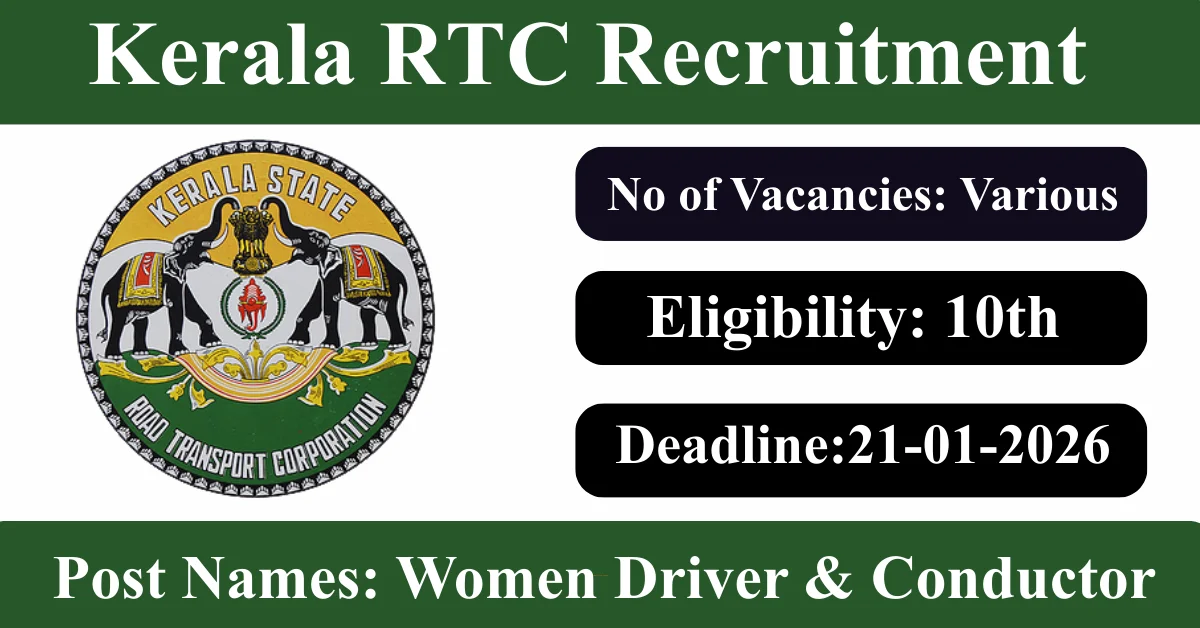 Kerala RTC Recruitment 2026: Apply for Various Women Driver & Conductor vacancies. Kerala State Road Transport Corporation invited applications from eligible and interested candidates to fill up Women Driver & Conductor Posts through Kerala RTC official notification January 2026. Job seekers who are looking for a career in Thiruvananthapuram – Kerala Government can make use of this opportunity. Interested candidates can Apply Online on or before 21-Jan-2026