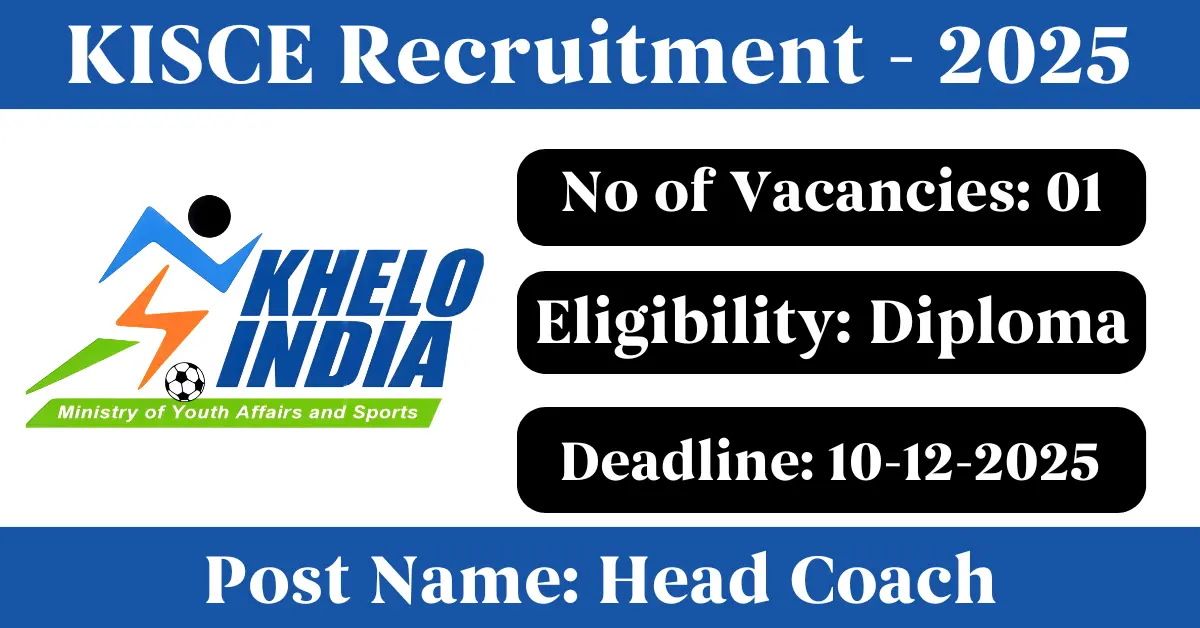 KISCE Recruitment 2025: Apply for 1 Head Coach vacancies. Khelo India State Centre of Excellence invited applications from eligible and interested candidates to fill up Head Coach Posts through KISCE official notification November 2025. Job seekers who are looking for a career in Guwahati – Assam Government can make use of this opportunity. Interested candidates can send an E-Mail on or before 10-Dec-2025