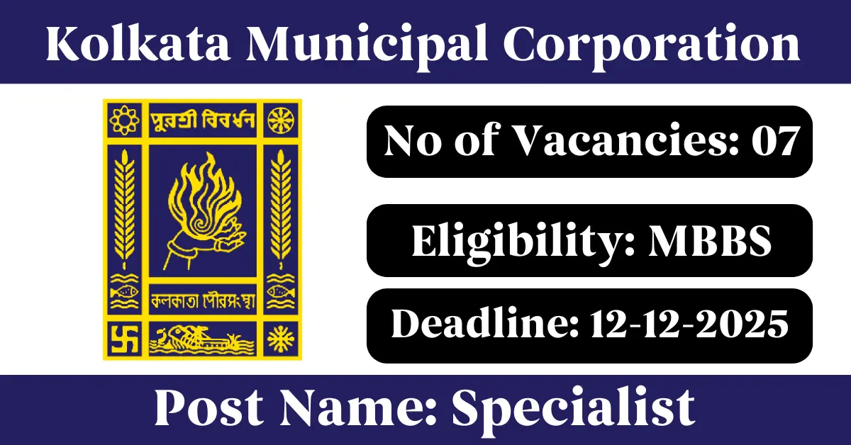 KMC Recruitment 2025: Apply for 7 Specialist vacancies. Kolkata Municipal Corporation invited applications from eligible and interested candidates to fill up Specialist Posts through KMC official notification December 2025. Job seekers who are looking for a career in Kolkata – West Bengal Government can make use of this opportunity. Interested candidates can attend for Walk-in-interview on 12-Dec-2025