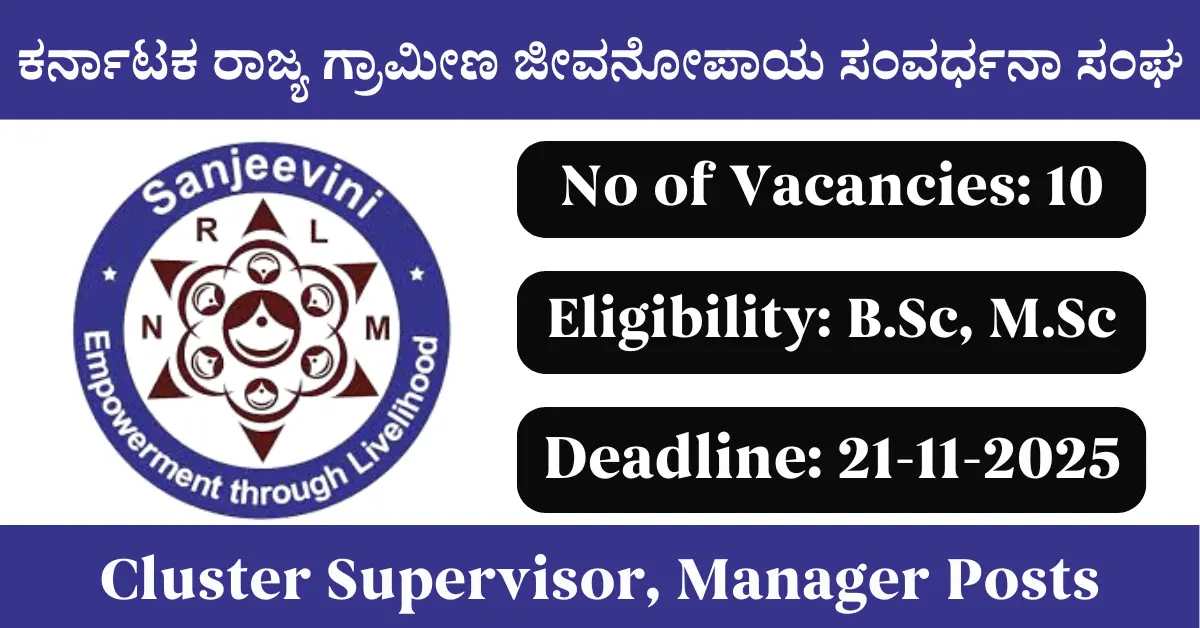 KSRLPS Recruitment 2025: Apply for 10 Block Manager, Office Assistant vacancies. Karnataka State Rural Livelihood Promotion Society invited applications from eligible and interested candidates to fill up Block Manager, Office Assistant Posts through KSRLPS official notification November 2025. Job seekers who are looking for a career in Hassan – Karnataka Government can make use of this opportunity. Interested candidates can Apply Online on or before 21-Nov-2025