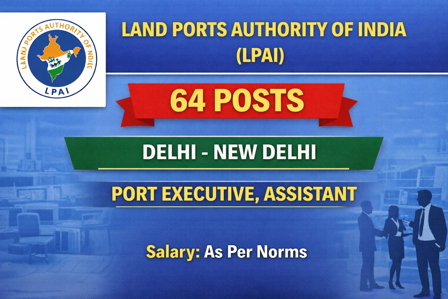 LPAI Recruitment 2026: Apply for 64 Port Executive, Assistant vacancies. Land Ports Authority of India invited applications from eligible and interested candidates to fill up Port Executive, Assistant Posts through LPAI official notification December 2025. Job seekers who are looking for a career in Delhi – New Delhi Government can make use of this opportunity. Interested candidates can Apply Offline on or before 27-Jan-2026
