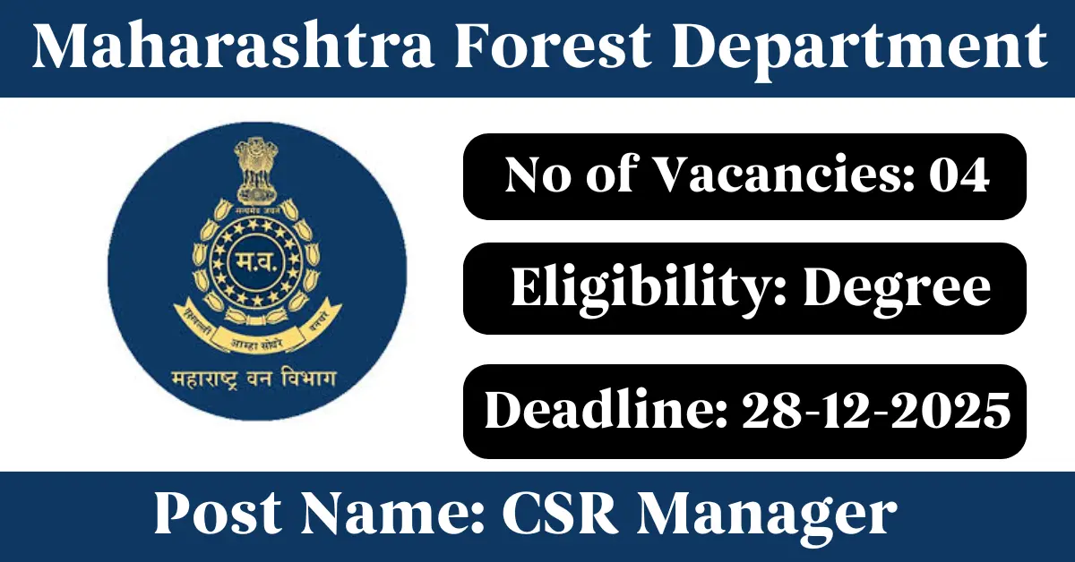 Maha Forest Recruitment 2025: Apply for 4 CSR Manager vacancies. Maharashtra Forest Department invited applications from eligible and interested candidates to fill up CSR Manager Posts through Maha Forest official notification December 2025. Job seekers who are looking for a career in Chandrapur – Maharashtra Government can make use of this opportunity. Interested candidates can Apply Online on or before 28-Dec-2025