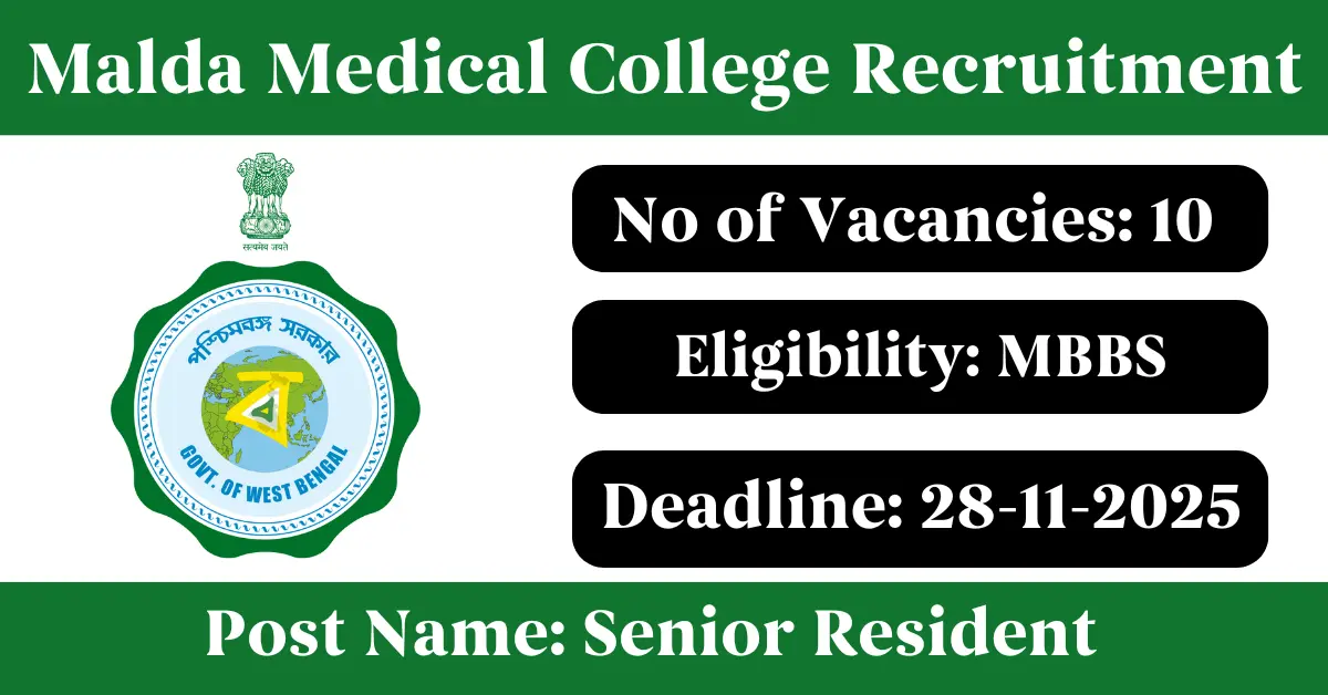 Malda Medical College Recruitment 2025: Apply for 10 Senior Resident vacancies. Malda Medical College and Hospital invited applications from eligible and interested candidates to fill up Senior Resident Posts through Malda Medical College official notification November 2025. Job seekers who are looking for a career in Malda – West Bengal Government can make use of this opportunity. Interested candidates can attend for Walk-in-interview on 28-Nov-2025