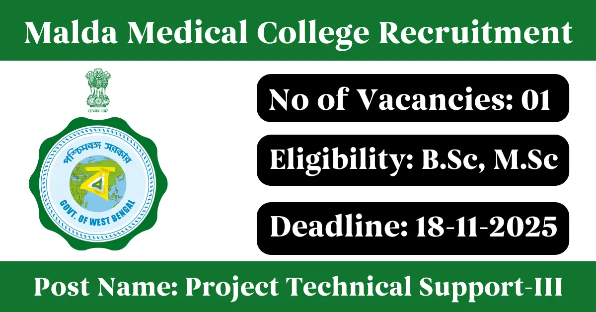 Malda Medical College Recruitment 2025: Apply for 1 Project Technical Support-III vacancies. Malda Medical College and Hospital invited applications from eligible and interested candidates to fill up Project Technical Support-III Posts through Malda Medical College official notification November 2025. Job seekers who are looking for a career in Malda – West Bengal Government can make use of this opportunity. Interested candidates can Apply Offline on or before 18-Nov-2025