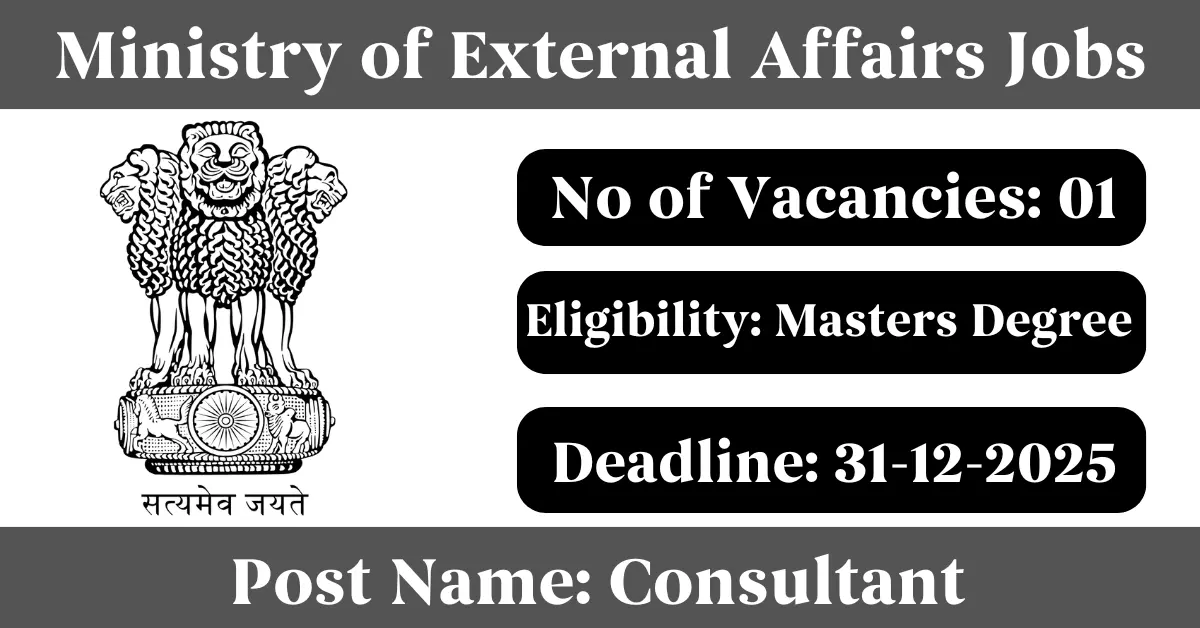 Ministry of External Affairs Recruitment 2025: Apply for 1 Consultant vacancies. Ministry of External Affairs invited applications from eligible and interested candidates to fill up Consultant Posts through Ministry of External Affairs official notification December 2025. Job seekers who are looking for a career in Delhi – New Delhi Government can make use of this opportunity. Interested candidates can Apply Offline on or before 31-Dec-2025