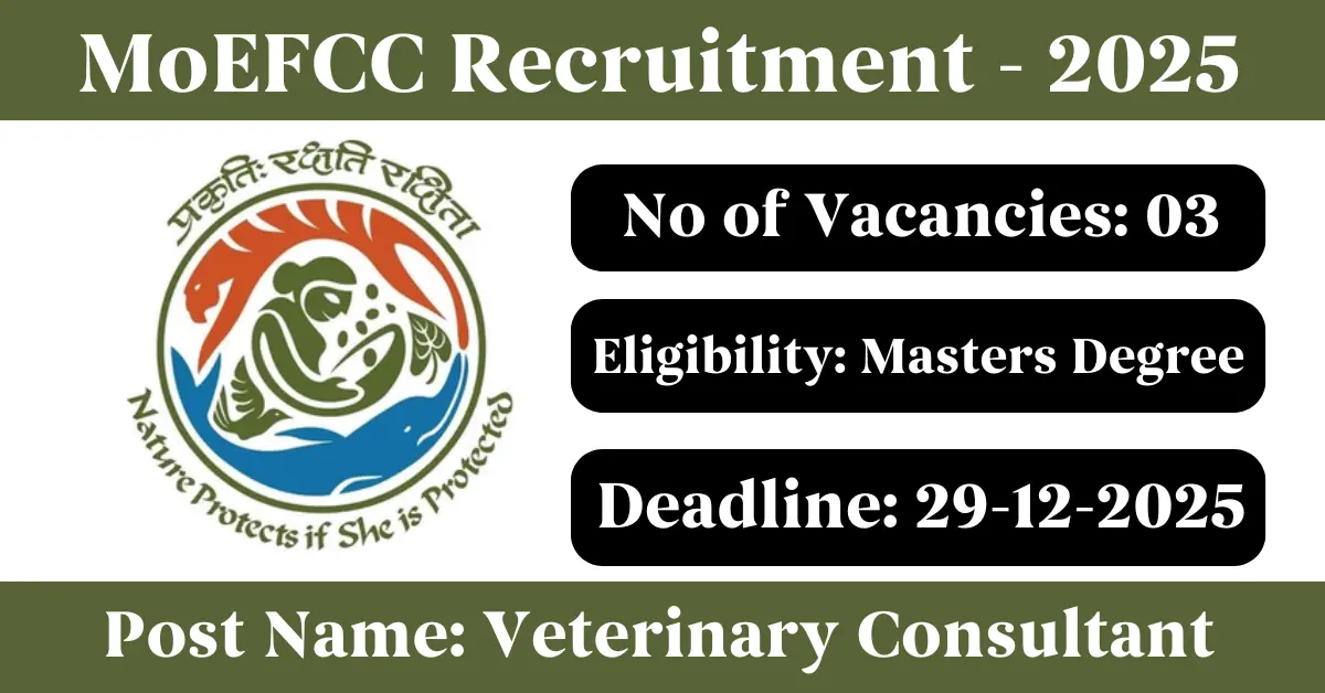 MoEFCC Recruitment 2025: Apply for 03 Veterinary Consultant vacancies. Ministry of Environment Forest and Climate Change invited applications from eligible and interested candidates to fill up Veterinary Consultant Posts through MoEFCC official notification December 2025. Job seekers who are looking for a career in Delhi – New Delhi Government can make use of this opportunity. Interested candidates can Apply Offline on or before 29-Dec-2025