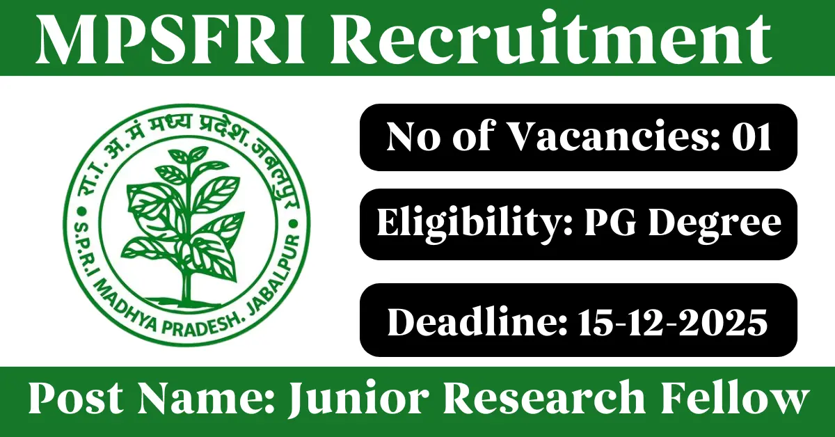 MPSFRI Recruitment 2025: Apply for 1 Junior Research Fellow vacancies. Madhya Pradesh State Forest Research Institute invited applications from eligible and interested candidates to fill up Junior Research Fellow Posts through MPSFRI official notification December 2025. Job seekers who are looking for a career in Jabalpur – Madhya Pradesh Government can make use of this opportunity. Interested candidates can attend for Walk-in-interview on 15-Dec-2025