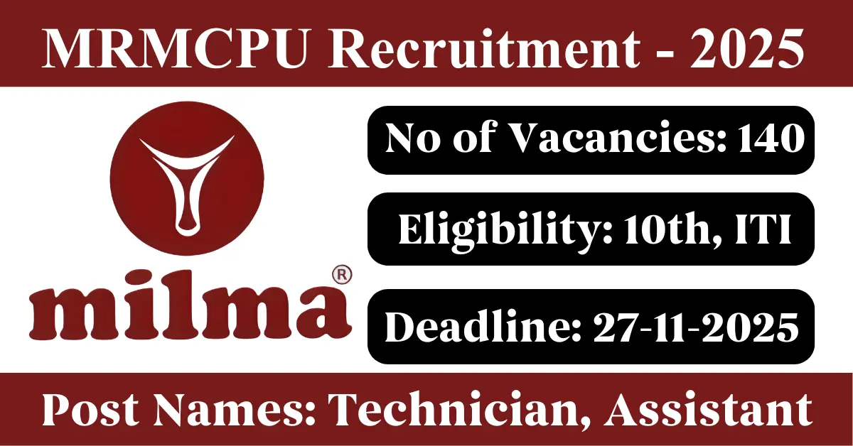 MRMCPU Recruitment 2025: Apply for 140 Technician, Assistant vacancies. Malabar Regional Co-operative Milk Producers’ Union Limited invited applications from eligible and interested candidates to fill up Technician, Assistant Posts through MRMCPU official notification November 2025. Job seekers who are looking for a career in Palakkad, Malappuram, Kozhikode, Wayanad, Kannur, Kasaragod – Kerala Government can make use of this opportunity. Interested candidates can Apply Online on or before 27-Nov-2025