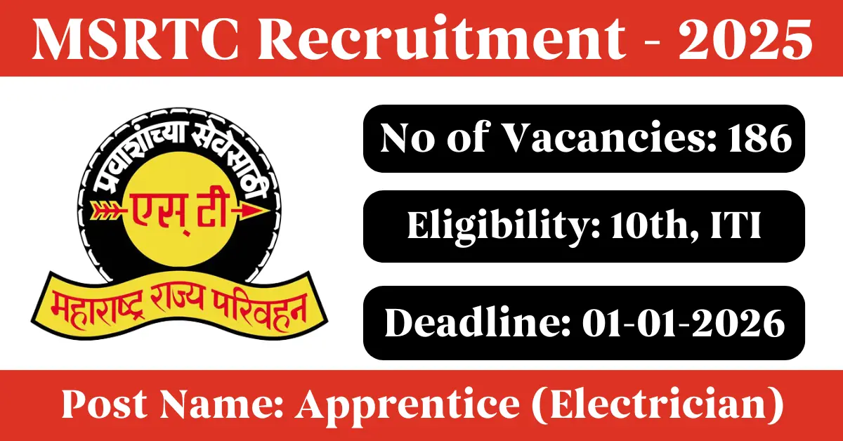 MSRTC Recruitment 2025: Apply for 186 Apprentice vacancies. Maharashtra State Road Transport Corporation invited applications from eligible and interested candidates to fill up Apprentice Posts through MSRTC official notification December 2025. Job seekers who are looking for a career in Chhatrapati Sambhajinagar – Maharashtra Government can make use of this opportunity. Interested candidates can Apply Online on or before 01-Jan-2026