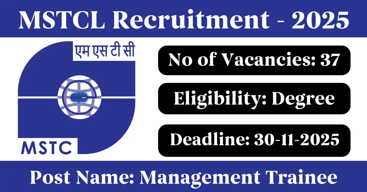 MSTCL Recruitment 2025: Apply for 37 Management Trainee vacancies. Metal Scrap Trade Corporation Limited invited applications from eligible and interested candidates to fill up Management Trainee Posts through MSTCL official notification November 2025. Job seekers who are looking for a career in All India Government can make use of this opportunity. Interested candidates can Apply Online on or before 30-Nov-2025