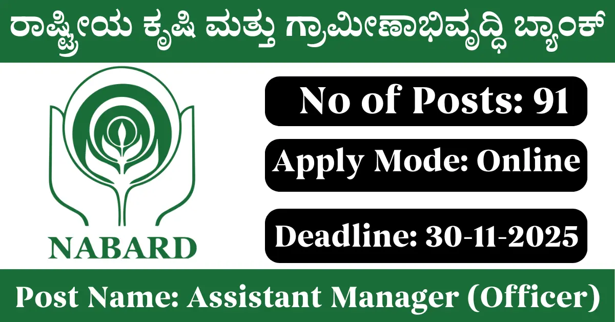 NABARD Recruitment 2025: Apply for 91 Assistant Manager (Officer) vacancies. National Bank for Agriculture and Rural Development invited applications from eligible and interested candidates to fill up Assistant Manager (Officer) Posts through NABARD official notification November 2025. Job seekers who are looking for a career in Mumbai – Maharashtra Government can make use of this opportunity. Interested candidates can Apply Online on or before 30-Nov-2025