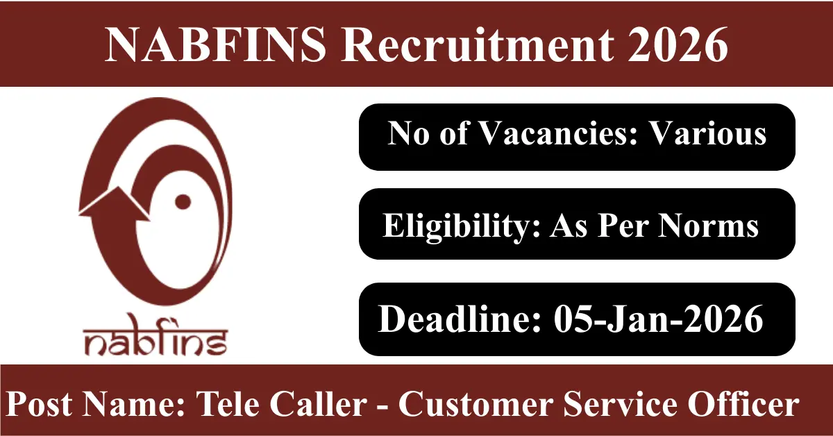 NABFINS Recruitment 2026: Apply for Various Tele Caller – Customer Service Officer vacancies. NABARD Financial Services Limited invited applications from eligible and interested candidates to fill up Tele Caller – Customer Service Officer Posts through NABFINS official notification December 2025. Job seekers who are looking for a career in Gujarat, Bihar, Odisha, West Bengal Government can make use of this opportunity. Interested candidates can Apply Online on or before 05-Jan-2026