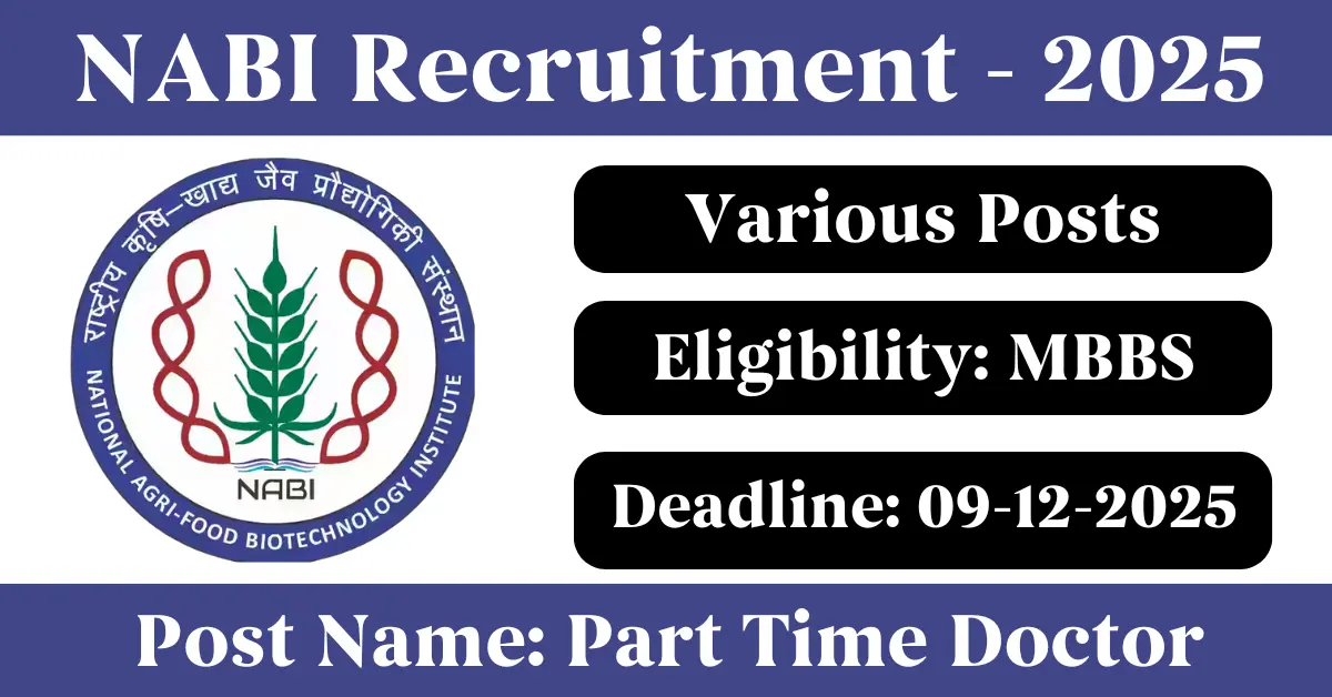NABI Recruitment 2025: Apply for Various Part Time Doctor vacancies. National Agri-Food Biotechnology Institute invited applications from eligible and interested candidates to fill up Part Time Doctor Posts through NABI official notification November 2025. Job seekers who are looking for a career in Mohali – Punjab Government can make use of this opportunity. Interested candidates can attend for Walk-in-interview on 09-Dec-2025