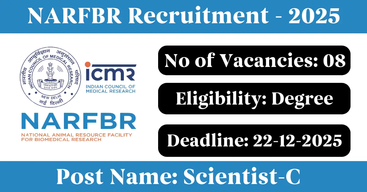 NARFBR Recruitment 2025: Apply for 8 Scientist vacancies. National Animal Resource Facility for Biomedical Research invited applications from eligible and interested candidates to fill up Scientist Posts through NARFBR official notification December 2025. Job seekers who are looking for a career in Hyderabad – Telangana Government can make use of this opportunity. Interested candidates can Apply Online on or before 22-Dec-2025