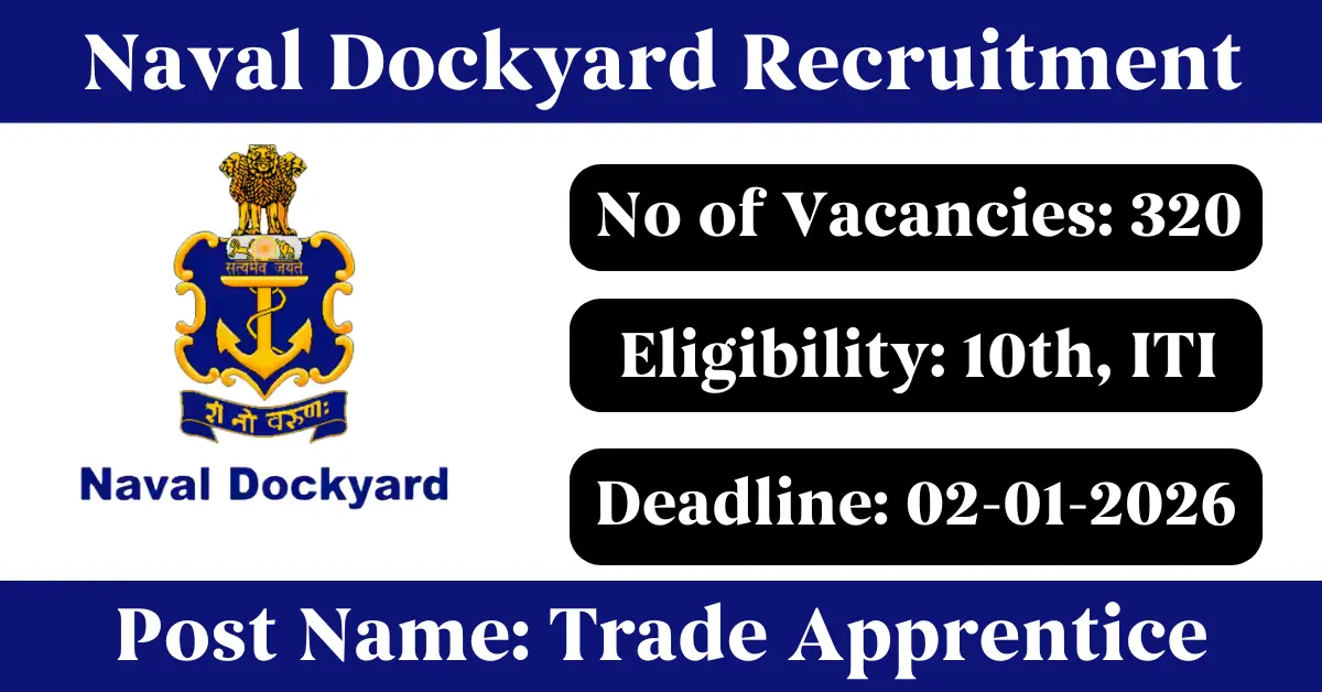 Naval Dockyard Recruitment 2025: Apply for 320 Trade Apprentice vacancies. Naval Dockyard invited applications from eligible and interested candidates to fill up Trade Apprentice Posts through Naval Dockyard official notification December 2025. Job seekers who are looking for a career in Visakhapatnam – Andhra Pradesh Government can make use of this opportunity. Interested candidates can Apply Offline on or before 02-Jan-2026