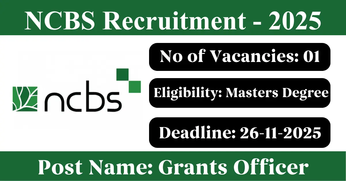 NCBS Recruitment 2025: Apply for 1 Grants Officer vacancies. National Centre For Biological Sciences invited applications from eligible and interested candidates to fill up Grants Officer Posts through NCBS official notification November 2025. Job seekers who are looking for a career in Bengaluru – Karnataka Government can make use of this opportunity. Interested candidates can Apply Online on or before 26-Nov-2025