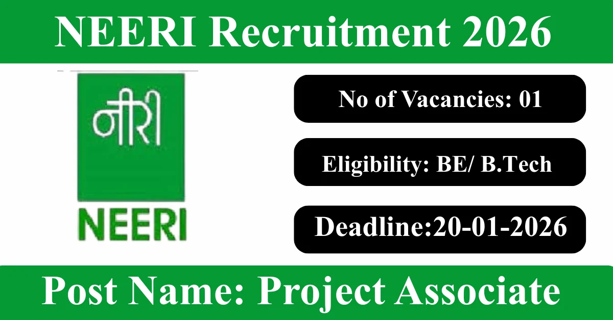 NEERI Recruitment 2026: Apply for 1 Project Associate-I vacancies. National Environmental Engineering Research Institute invited applications from eligible and interested candidates to fill up Project Associate-I Posts through NEERI official notification January 2026. Job seekers who are looking for a career in Mumbai – Maharashtra Government can make use of this opportunity. Interested candidates can attend for Walk-in-interview on 20-Jan-2026