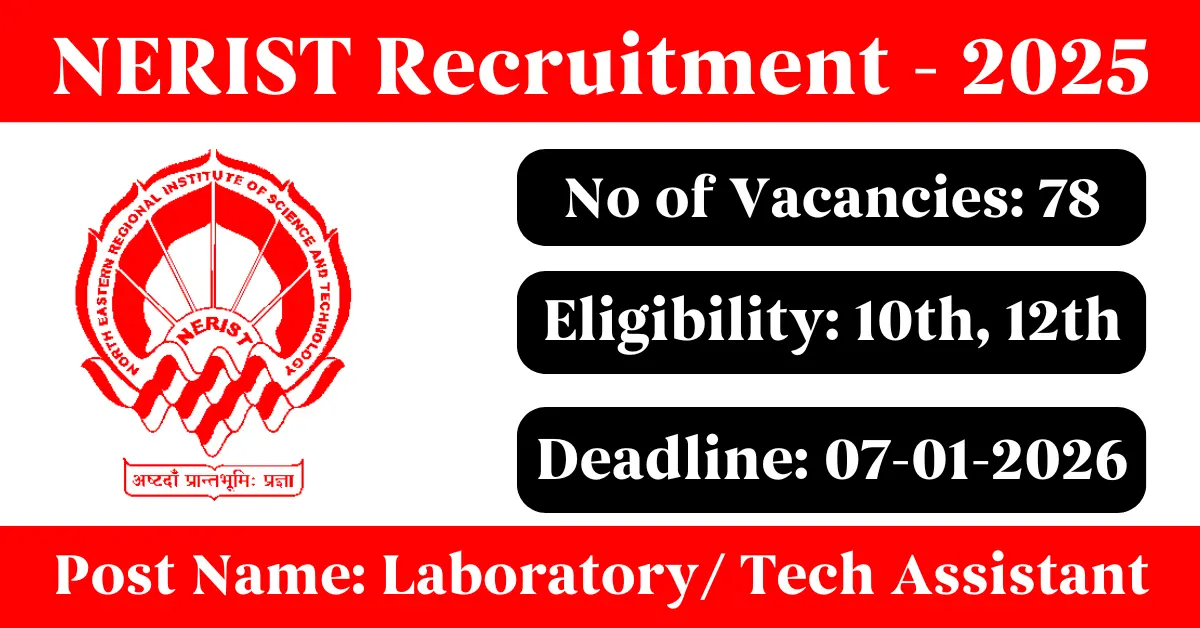 NERIST Recruitment 2025: Apply for 78 Laboratory/ Tech Assistant vacancies. North Eastern Regional Institute of Science and Technology invited applications from eligible and interested candidates to fill up Laboratory/ Tech Assistant Posts through NERIST official notification November 2025. Job seekers who are looking for a career in Nirjuli – Arunachal Pradesh Government can make use of this opportunity. Interested candidates can Apply Offline on or before 07-Jan-2026