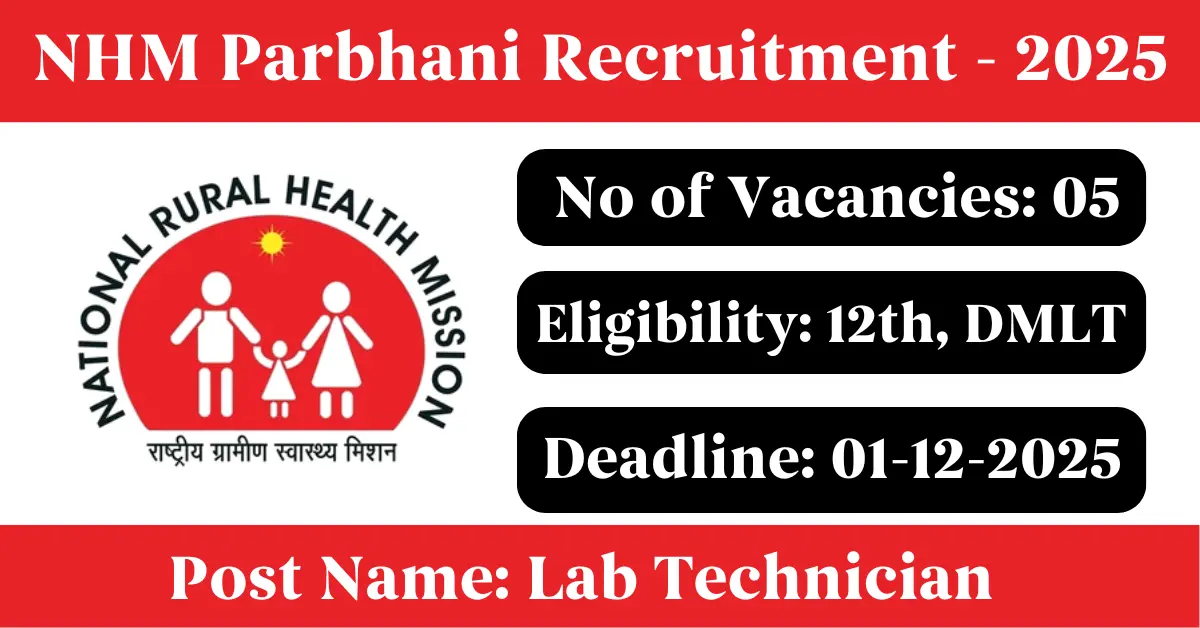 NHM Parbhani Recruitment 2025: Apply for 5 Lab Technician vacancies. National Health Mission Parbhani invited applications from eligible and interested candidates to fill up Lab Technician Posts through NHM Parbhani official notification November 2025. Job seekers who are looking for a career in Parbhani – Maharashtra Government can make use of this opportunity. Interested candidates can Apply Offline on or before 01-Dec-2025