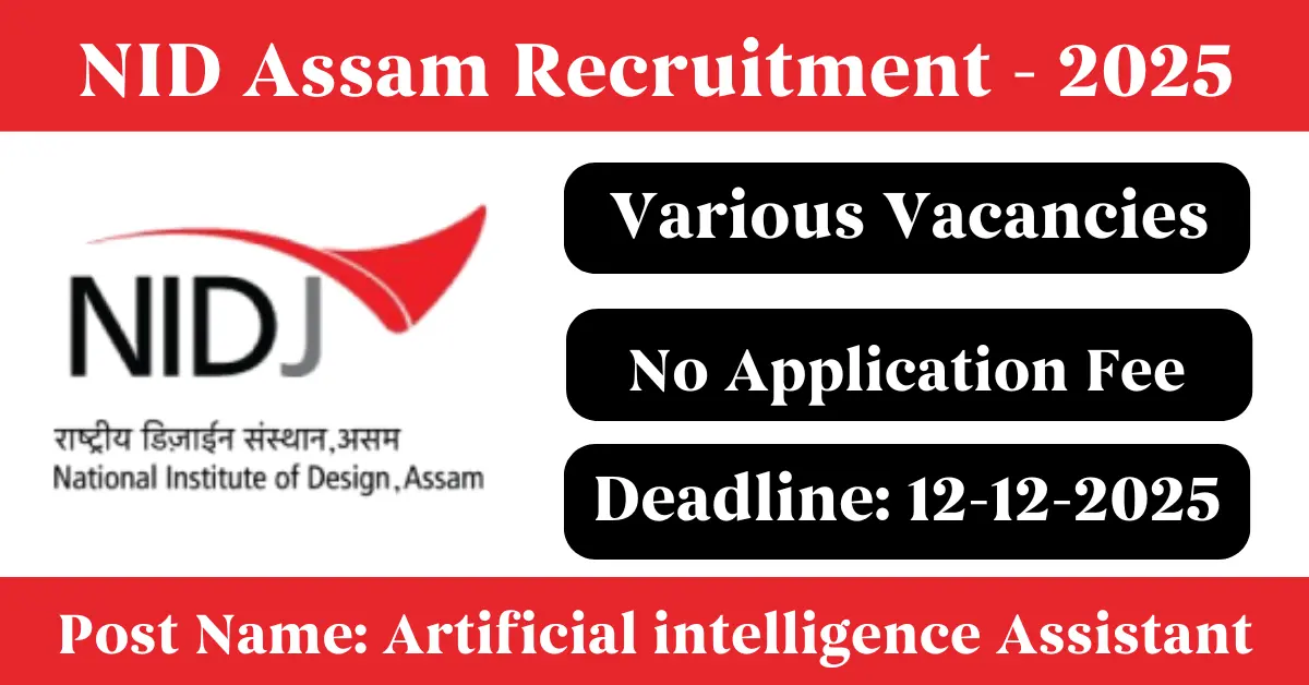 NID Assam Recruitment 2025: Apply for Various Artificial intelligence Assistant vacancies. National Institute of Design Assam invited applications from eligible and interested candidates to fill up Artificial intelligence Assistant Posts through NID Assam official notification December 2025. Job seekers who are looking for a career in Jorhat – Assam Government can make use of this opportunity. Interested candidates can send an E-Mail on or before 12-Dec-2025