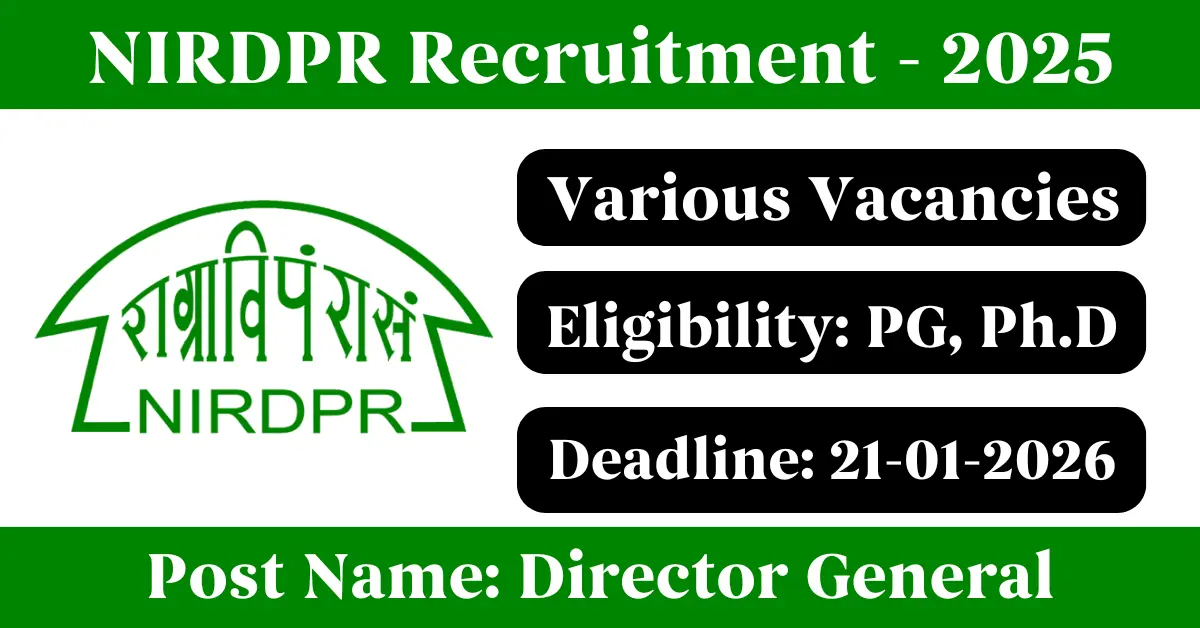NIRDPR Recruitment 2025: Apply for Various Director General vacancies. National Institute of Rural Development and Panchayati Raj invited applications from eligible and interested candidates to fill up Director General Posts through NIRDPR official notification December 2025. Job seekers who are looking for a career in Hyderabad – Telangana Government can make use of this opportunity. Interested candidates can Apply Offline on or before 21-Jan-2026