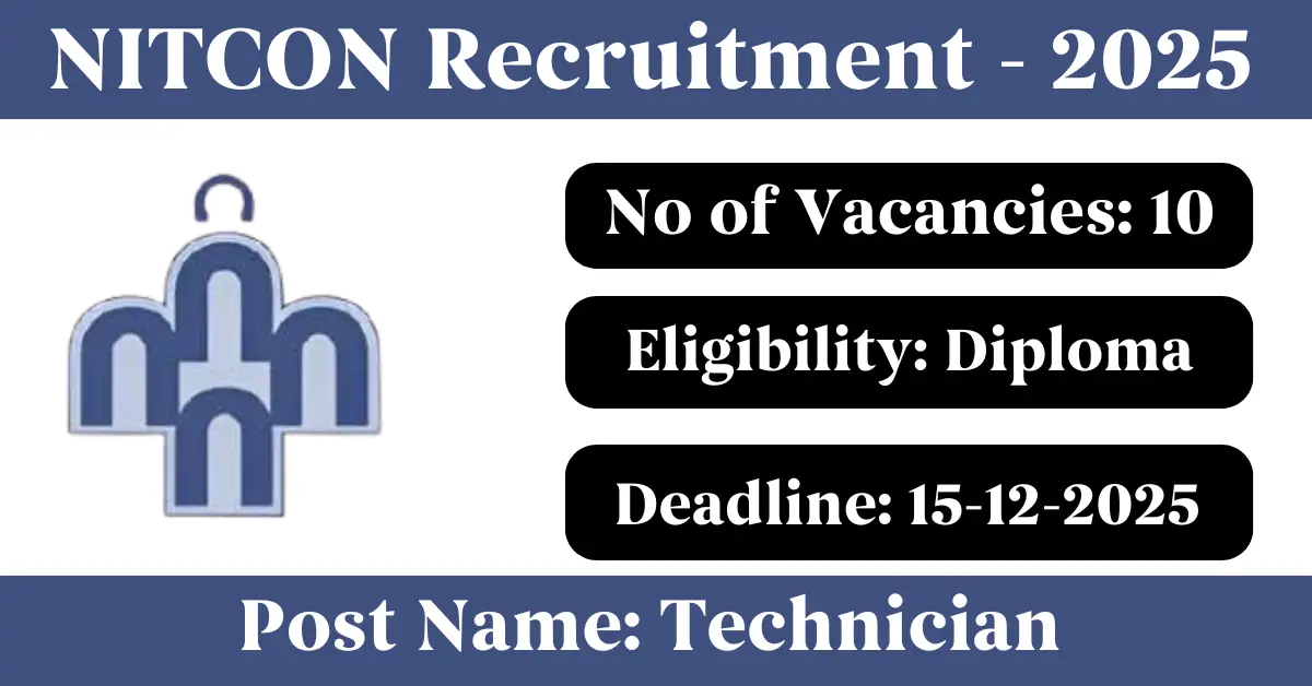 NITCON Recruitment 2025: Apply for 10 Technician vacancies. NITCON Limited invited applications from eligible and interested candidates to fill up Technician Posts through NITCON official notification December 2025. Job seekers who are looking for a career in Kutch – Gujarat Government can make use of this opportunity. Interested candidates can send an E-Mail on or before 15-Dec-2025