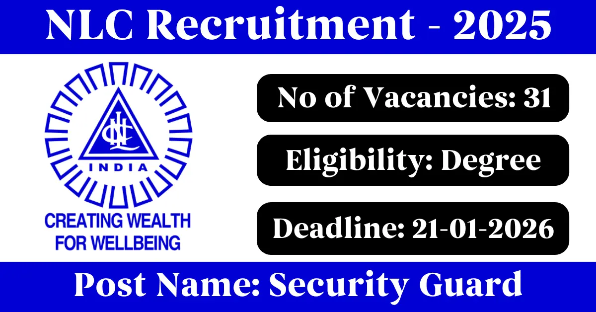 NLC Recruitment 2025: Apply for 31 Security Guard, Airport Director vacancies. Neyveli Lignite Corporation Limited invited applications from eligible and interested candidates to fill up Security Guard, Airport Director Posts through NLC official notification December 2025. Job seekers who are looking for a career in Neyveli – Tamil Nadu Government can make use of this opportunity. Interested candidates can Apply Online on or before 21-Jan-2026