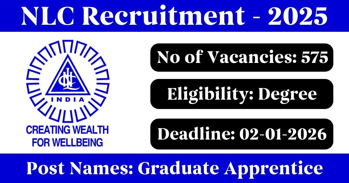 NLC Recruitment 2025: Apply for 575 Apprentice vacancies. Neyveli Lignite Corporation Limited invited applications from eligible and interested candidates to fill up Apprentice Posts through NLC official notification December 2025. Job seekers who are looking for a career in Neyveli – Tamil Nadu Government can make use of this opportunity. Interested candidates can Apply Online/Offline on or before 02-Jan-2026