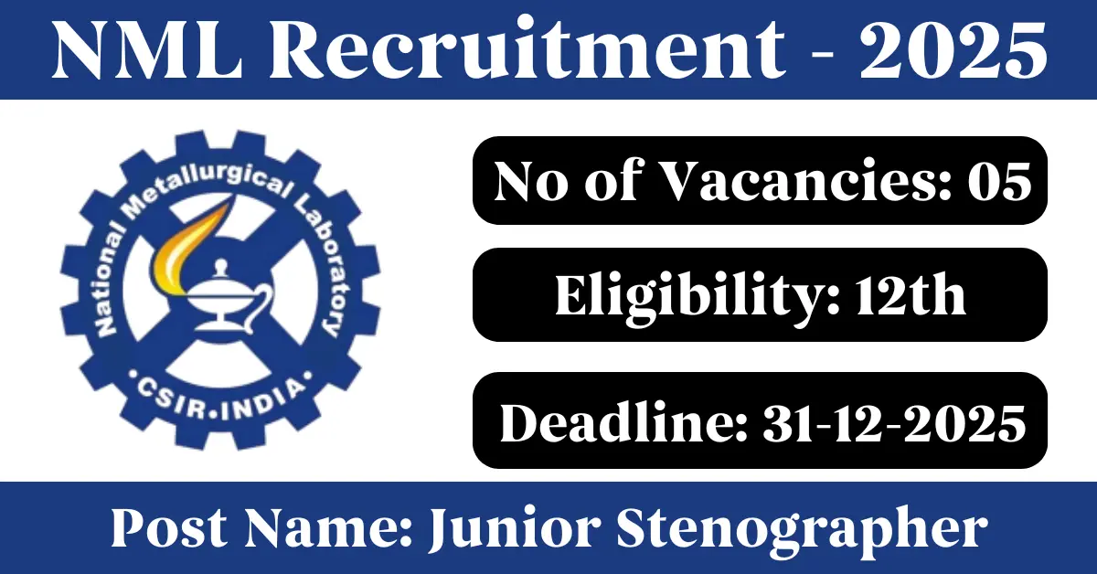 NML Recruitment 2025: Apply for 05 Junior Stenographer vacancies. National Metallurgical Laboratory invited applications from eligible and interested candidates to fill up Junior Stenographer Posts through NML official notification December 2025. Job seekers who are looking for a career in Jamshedpur – Jharkhand Government can make use of this opportunity. Interested candidates can Apply Online on or before 31-Dec-2025