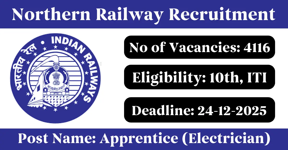 Northern Railway Recruitment 2025: Apply for 4116 Apprentice vacancies. Northern Railway invited applications from eligible and interested candidates to fill up Apprentice Posts through Northern Railway official notification November 2025. Job seekers who are looking for a career in Firozpur – Punjab, Moradabad, Lucknow – Uttar Pradesh, Ambala – Haryana, Delhi – New Delhi Government can make use of this opportunity. Interested candidates can Apply Online on or before 24-Dec-2025