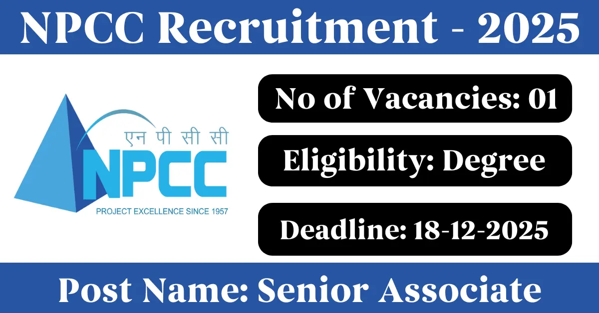NPCC Recruitment 2025: Apply for 1 Senior Associate vacancies. National Projects Construction Corporation Limited invited applications from eligible and interested candidates to fill up Senior Associate Posts through NPCC official notification November 2025. Job seekers who are looking for a career in Kolkata – West Bengal Government can make use of this opportunity. Interested candidates can attend for Walk-in-interview on 18-Dec-2025