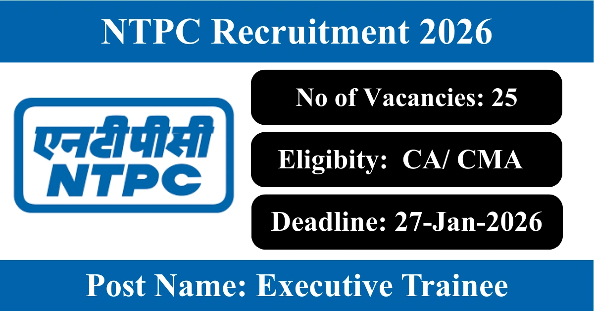 NTPC Recruitment 2026: Apply for 25 Executive Trainee vacancies. National Thermal Power Corporation Limited invited applications from eligible and interested candidates to fill up Executive Trainee Posts through NTPC official notification January 2026. Job seekers who are looking for a career in All India Government can make use of this opportunity. Interested candidates can Apply Online on or before 27-Jan-2026