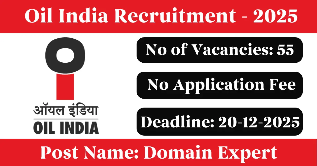 Oil India Recruitment 2025: Apply for 55 Domain Expert vacancies. Oil India Limited invited applications from eligible and interested candidates to fill up Domain Expert Posts through Oil India official notification November 2025. Job seekers who are looking for a career in Noida – Uttar Pradesh Government can make use of this opportunity. Interested candidates can send an E-Mail on or before 20-Dec-2025