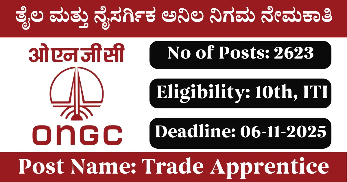 ONGC Recruitment 2025: Apply for 2623 Trade Apprentice vacancies. Oil and Natural Gas Corporation invited applications from eligible and interested candidates to fill up Trade Apprentice Posts through ONGC official notification October 2025. Job seekers who are looking for a career in All India Government can make use of this opportunity. Interested candidates can Apply Online on or before 06-Nov-2025 (Last Date Extended up to 17-Nov-2025) (Last Date Extended up to 30-Nov-2025)