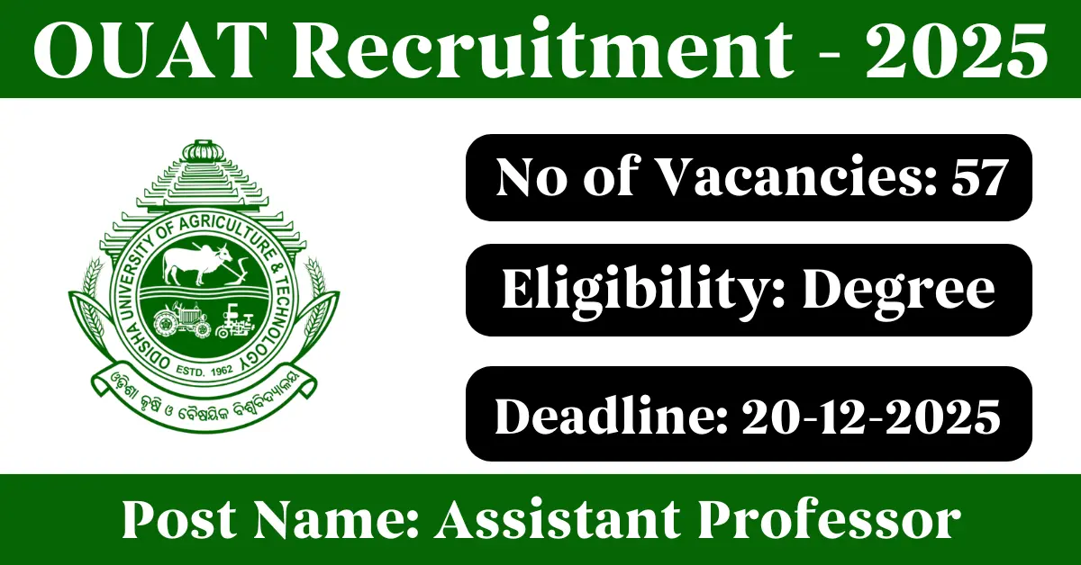 OUAT Recruitment 2025: Apply for 57 Assistant Professor vacancies. Odisha University of Agriculture & Technology invited applications from eligible and interested candidates to fill up Assistant Professor Posts through OUAT official notification November 2025. Job seekers who are looking for a career in Bhubaneswar – Odisha Government can make use of this opportunity. Interested candidates can Apply Offline on or before 20-Dec-2025