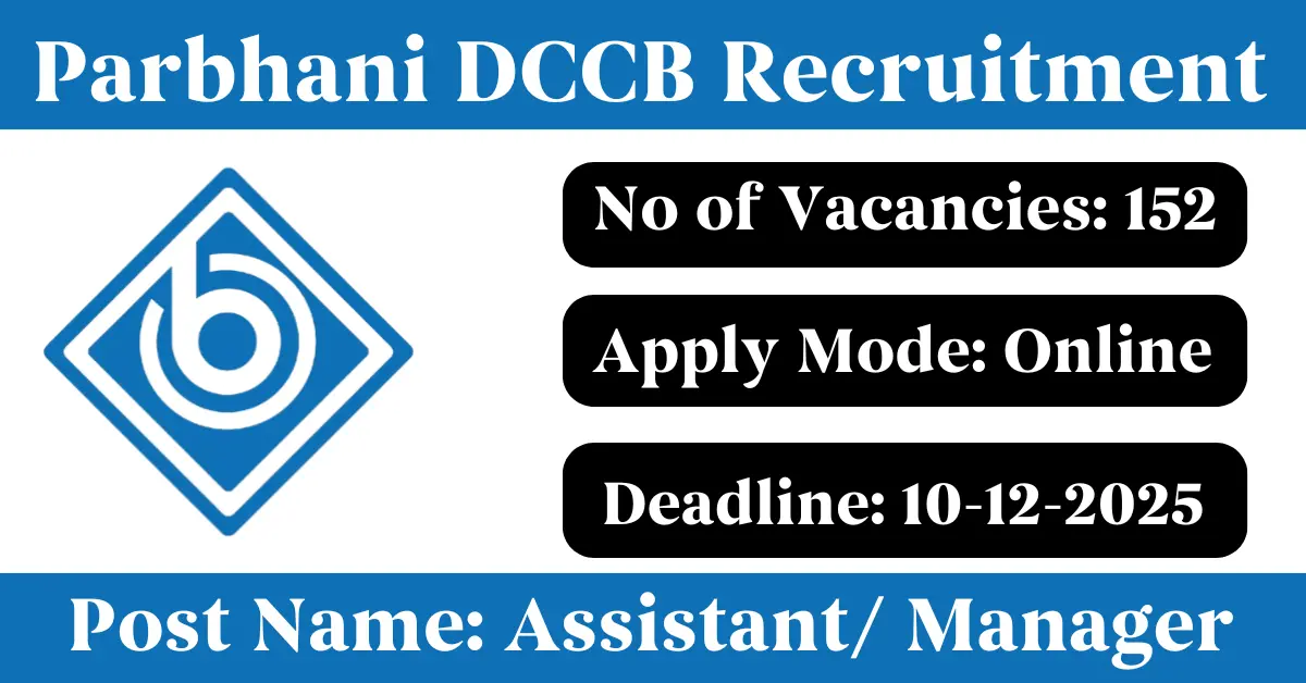 Parbhani DCCB Recruitment 2025: Apply for 152 Assistant/ Manager vacancies. Parbhani District Central Co-Operative Bank Limited invited applications from eligible and interested candidates to fill up Assistant/ Manager Posts through Parbhani DCCB official notification November 2025. Job seekers who are looking for a career in Parbhani – Maharashtra Government can make use of this opportunity. Interested candidates can Apply Online on or before 10-Dec-2025