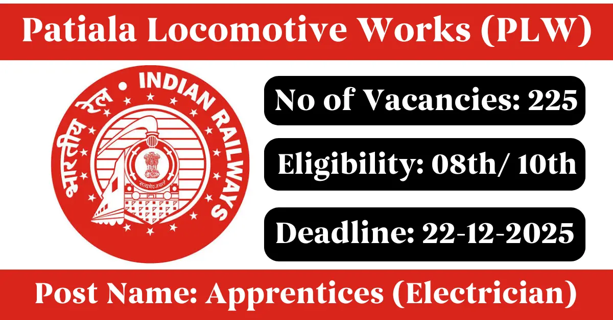 PLW Recruitment 2025: Apply for 225 Apprentices vacancies. Patiala Locomotive Works invited applications from eligible and interested candidates to fill up Apprentices Posts through PLW official notification December 2025. Job seekers who are looking for a career in Patiala- Punjab Government can make use of this opportunity. Interested candidates can Apply Online on or before 22-Dec-2025